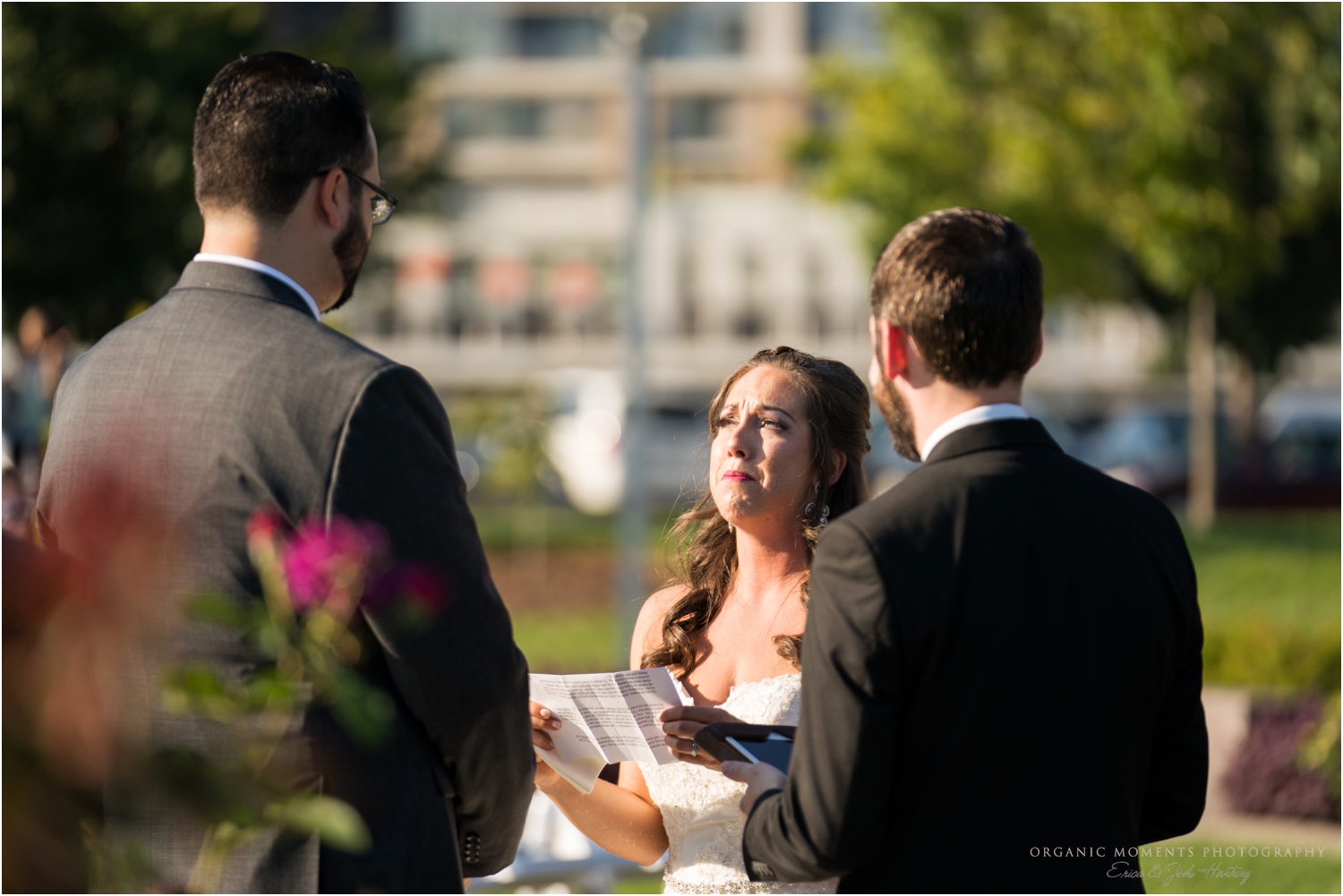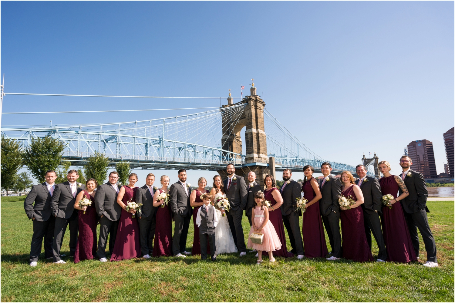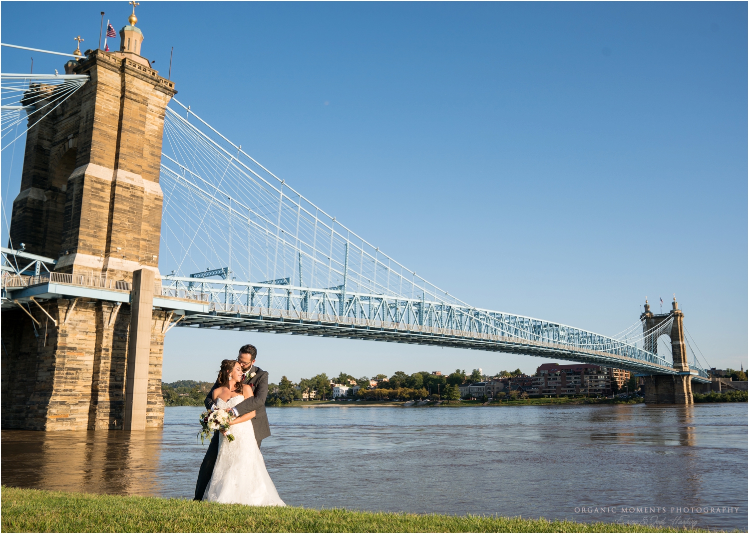 Anderson Pavilion rests on the banks of the Ohio River against the Cincinnati skyline. It boasts spectacular views, contemporary decor and elegance and features a beautiful Rose Garden that Shannon and John actually said their vows in. Guests from out of town were really shown the beauty of Cincinnati at this location. But, the iconic Roebling Suspension Bridge was the main centerpiece for the day. In all of our correspondence the Shannon, she really emphasized how important was to have the Roebling Bridge as her backdrop in the photos.