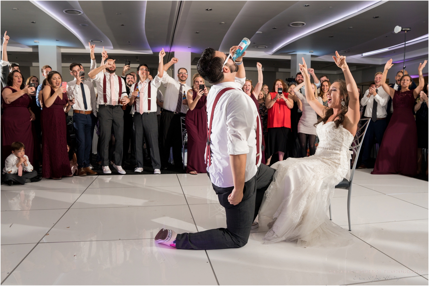 They really made everyone appreciate and learn about Cincinnati. The centerpieces during the reception were rocks with different locations of Cincinnati on them. We had never seen anything like that. Also, Shannon iced John when he went to remove her garter. If you don’t know what being iced is, let us give you a quick rundown. It’s a game where someone hides a bottle of Smirnoff Ice for another person to come across. When the iced person touches it, he or she must drop to one knee and chug the entire bottle of Smirnoff Ice! Other players who see the Icer hide the bottle are exempt from drinking it.