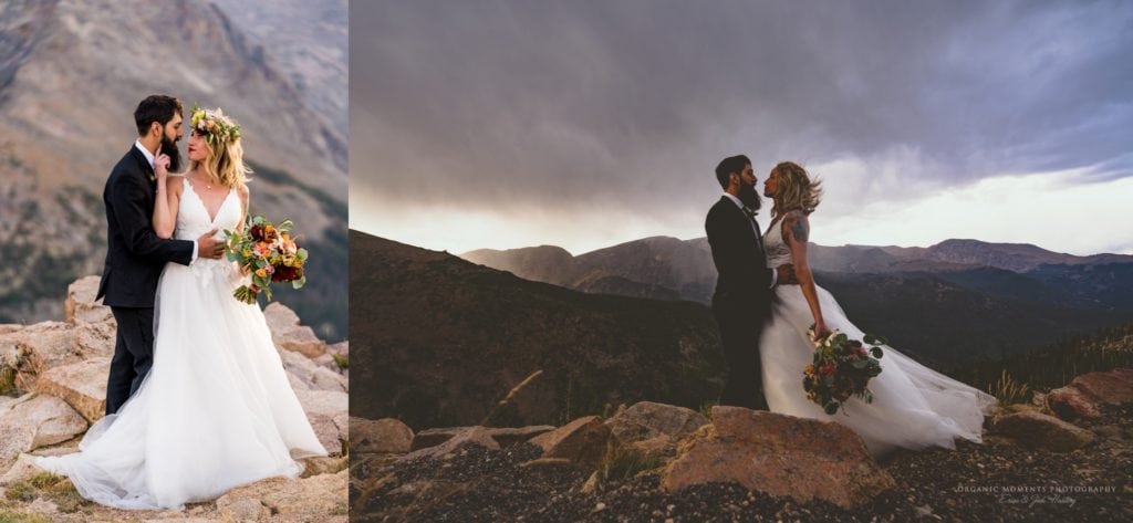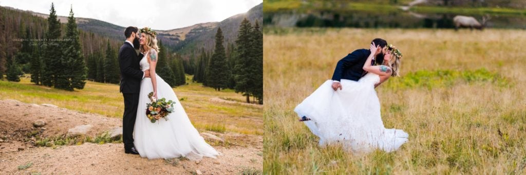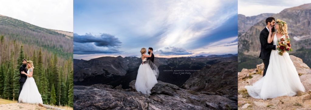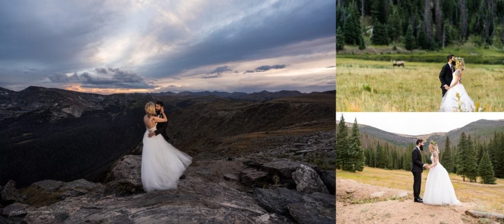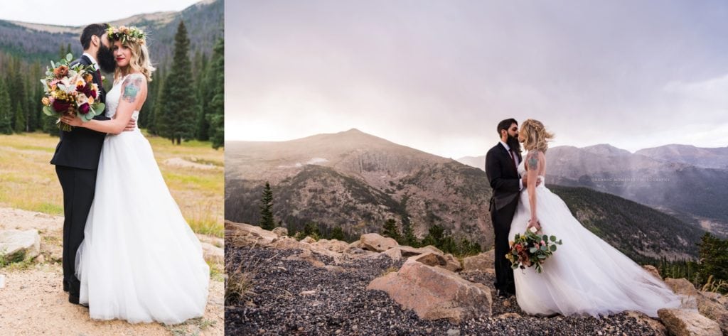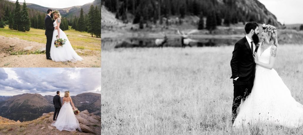 We photographed a wedding in Denver recently (pictures below. You MUST see) and the bride and groom were awesome and opted to do a day after session. We took them to Rocky Mountain National Park. It was super fun, albeit a bit chilly and super windy at the top. They brought along some of their out of town family and we all got to go on a journey together!