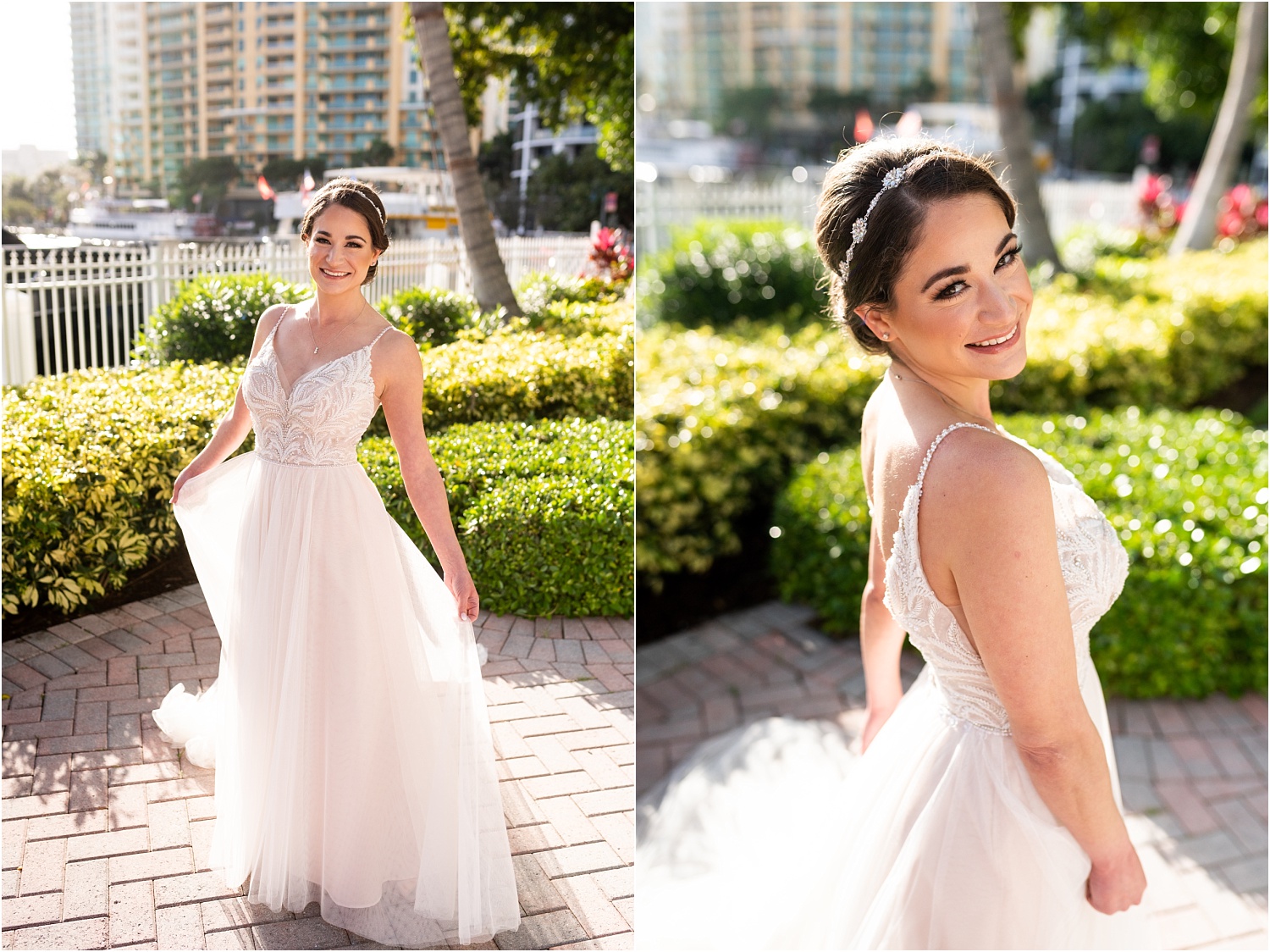 Emily and Eric’s love story is a story of love at first sight and then a long wait before finally coming together. Eric first saw Emily at his stepsister’s wedding and fell in love with her. Before he could find out her name and reach out, she had left the party. He kept looking for her, but his efforts went in vain. Years later, Eric’s stepsister Brittany, who had no idea about his feelings, decided to introduce Emily to Eric. On their first date, the moment Eric saw Emily, his happiness knew no bounds. Eventually, he told Emily that he had been looking for her all this time and didn’t want to lose her again. Emily felt the warmth of true love and said her big YES! The two got married at the Riverside Hotel in Fort Lauderdale and chose me to be their wedding photographer. I enjoyed photographing their wedding and got some stunning images.