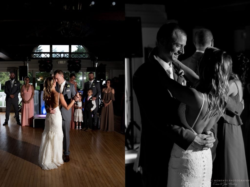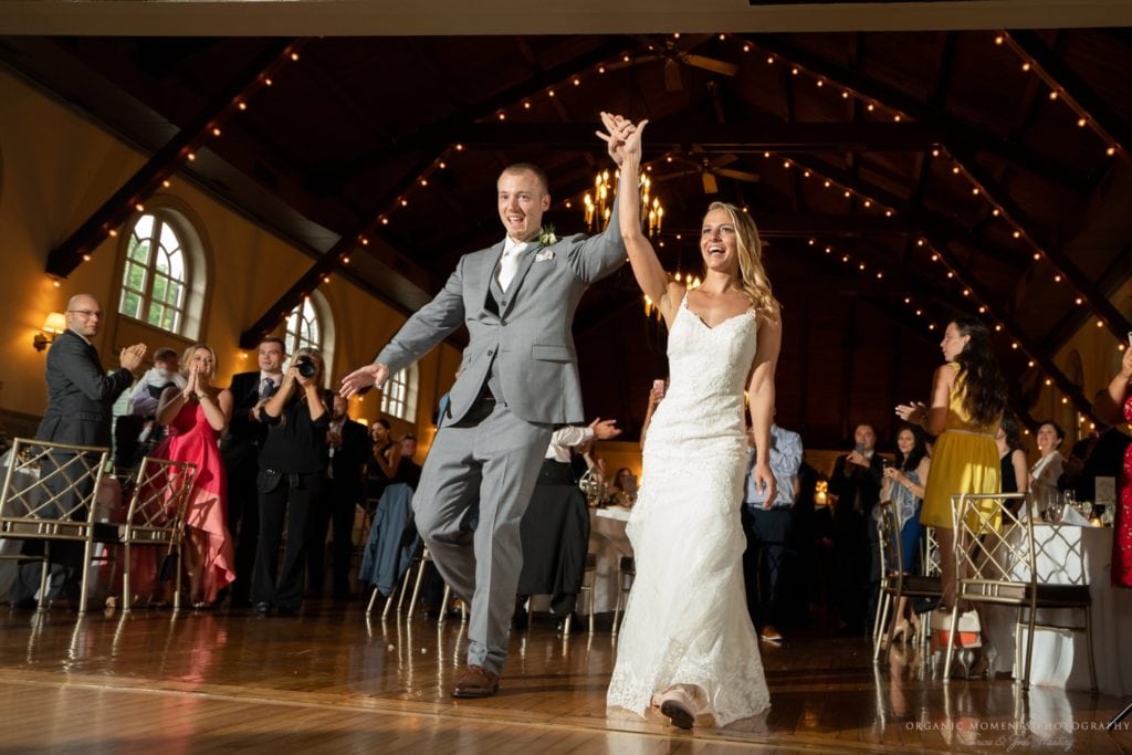 That casual, fun feeling carried through the day. From the corn hole during cocktail hour to the delicious donut wall, it was clear everyone was having a blast. The bride and groom were introduced to applause and cheering from the room, but it was like the world fell away during their first dance. Later, family and friends danced the night away.