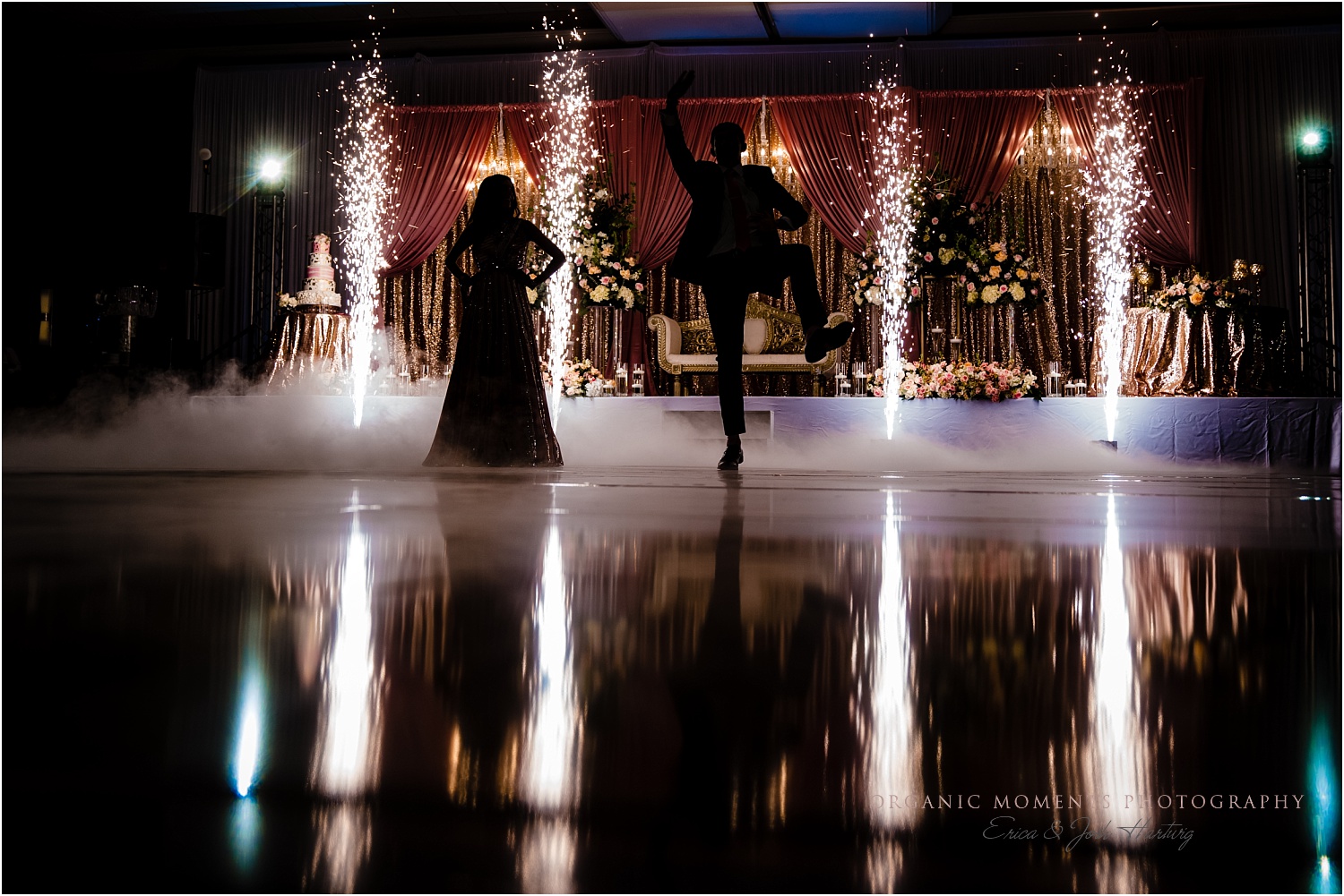 Sanskriti and Ambar had a lovely first look before their ceremony. Despite so much happening simultaneously, we made sure we got some romantic couples portraits of them. They had a Hindu wedding, including the tradition of taking 7 rounds around the holy fire. Once the ceremony was over, they had a cocktail hour outside and one of the most lively receptions we’ve witnessed inside the Marriott Harbor Beach Resort & Spa. Besides tons of choreographed dance performances, including the first dances, there was also an exceptional performance by a Sitar player.