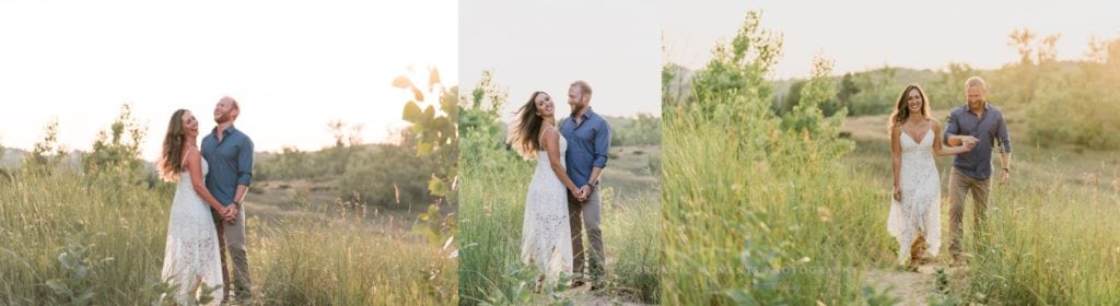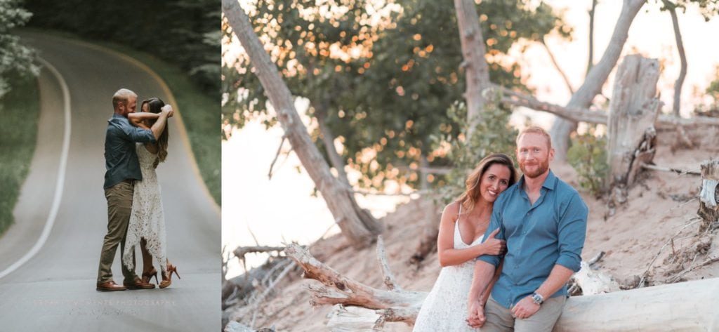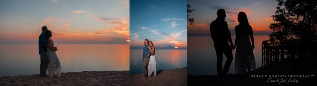 We stopped at about 3 to 4 trails before arriving at the sunset location. They were troopers and hiked all over the dunes with us. It was well worth it. When you look at the pictures of our Sleeping Bear Dunes engagement shoot below, you will understand how beautiful the location is. We think it’s spectacular. We decided for our photo session to stay at the top of the Dunes at trail nine and ten. The weather was amazing and luckily we were treated to a breathtaking sunset.